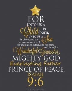 Chorus — Isaiah 9:6 For unto us a Child is born, unto us a Son is given: and the government shall be upon His shoulder: and His name shall be called Wonderful, Counsellor, the mighty God, the everlasting Father, the Prince of Peace. Pifa (Pastoral Symphony)