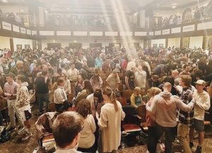 We moved about laying hands on people and praying for them. People reported various touches of God in their lives. Church teams prayed for hundreds of people. Many were saved. Many were healed. One man testified, “I came to this meeting blind, but while you were singing I found I could see.”